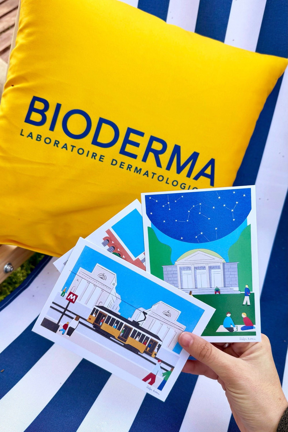 I created three illustrations dedicated to Porta Venezia for the Bioderma Sun Hub installed in Piazza Oberdan during Milano Design Week 2025. The subjects—the Bastioni, the Hoepli Planetarium, and the Civic Museum of Natural History—are three iconic landmarks, also featured in the Porta Venezia Design District logo.