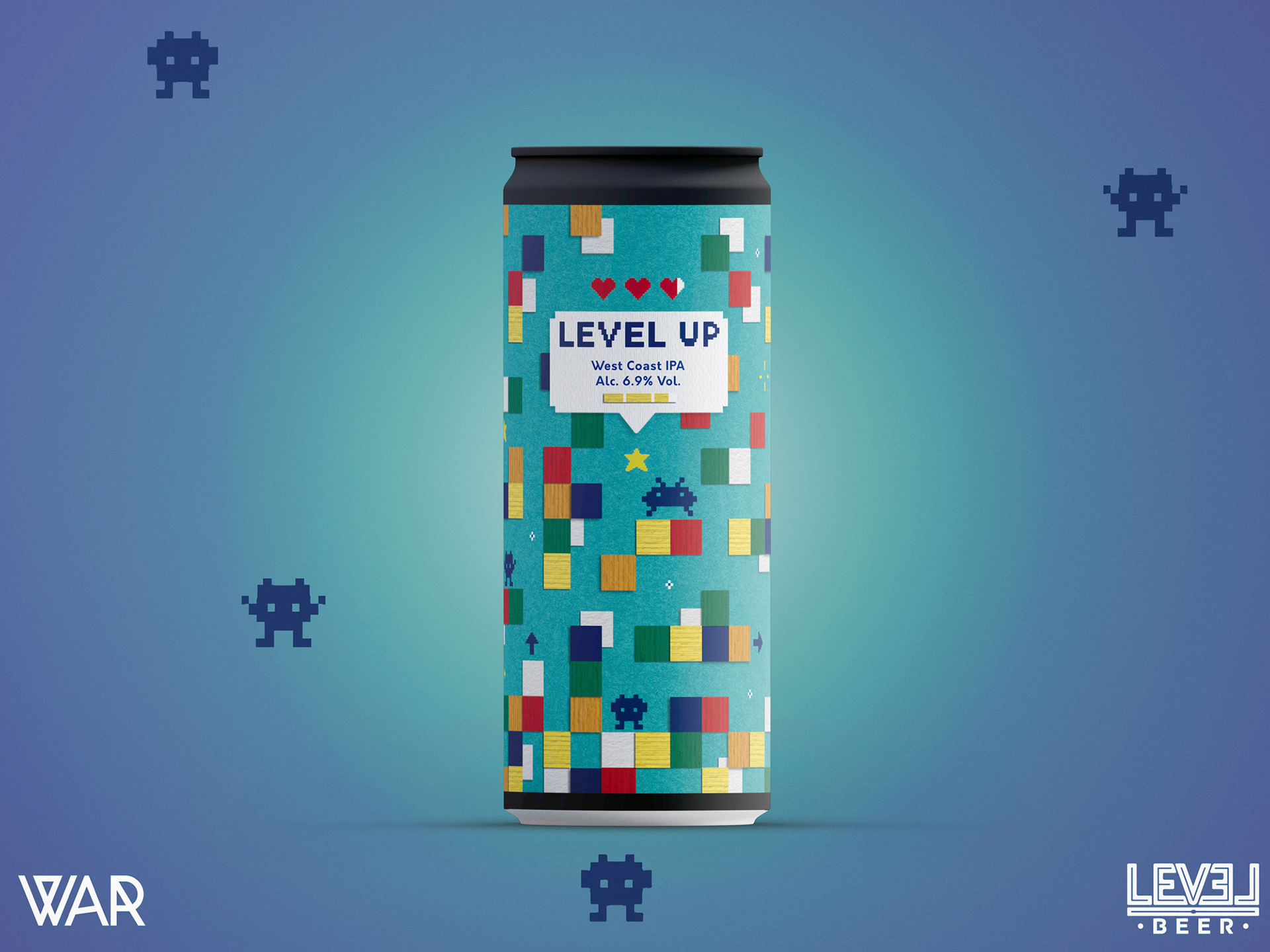 I created the illustration for Level Up, a West Coast IPA by Birrificio War, produced in collaboration with the team at Level Beer. The artwork is inspired by the name and the concept of “leveling up” in video games.