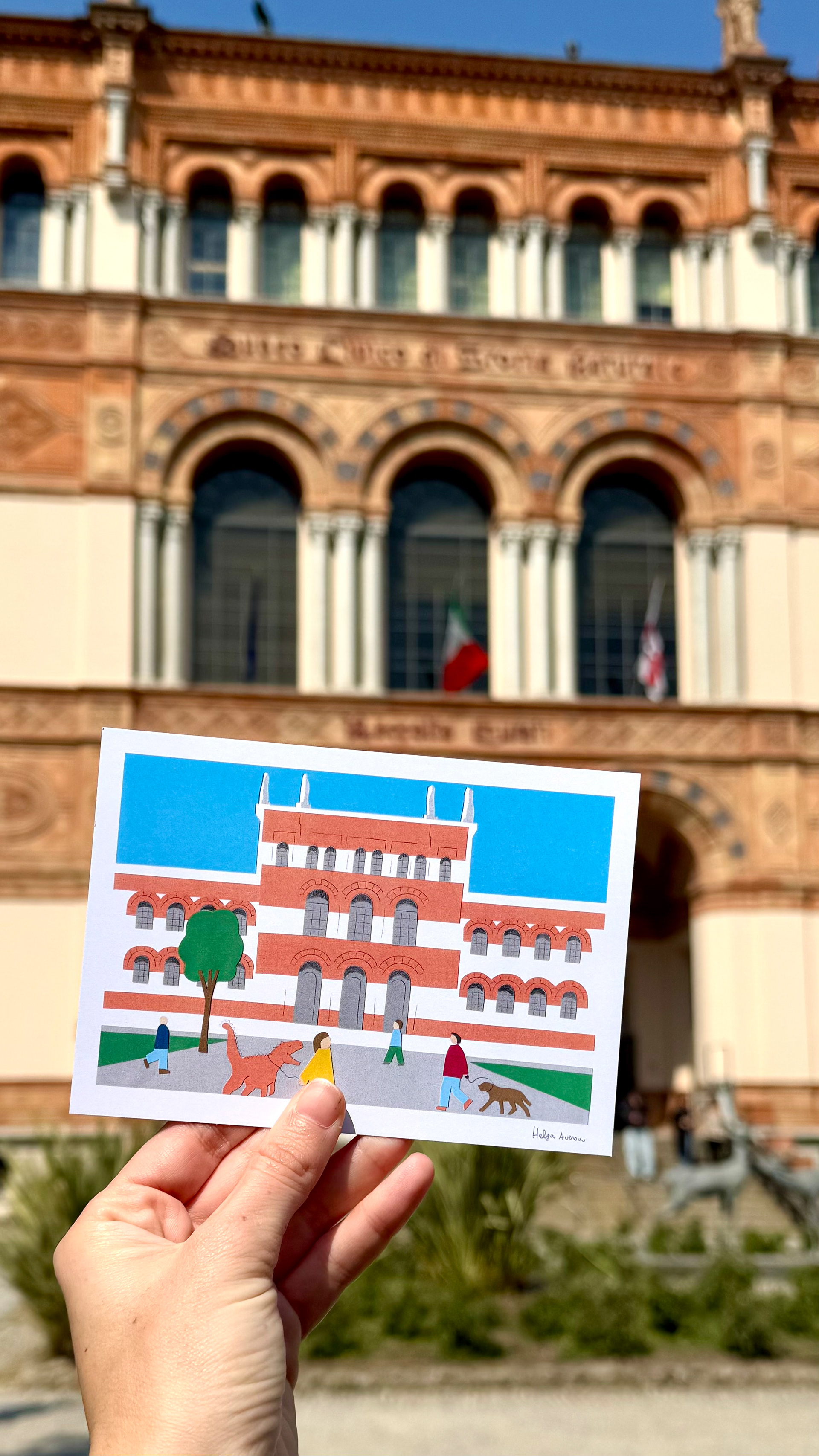 Il Bioderma Sun Hub è stato allestito in Piazza Oberdan durante la Milano Design Week, creando uno spazio in cui arte, design e benessere si incontrano. Per il progetto ho realizzato tre illustrazioni dedicate a Porta Venezia, rappresentando i Bastioni, il Planetario Hoepli e il Museo Civico di Storia Naturale, tutte realizzate con la tecnica del collage analogico.