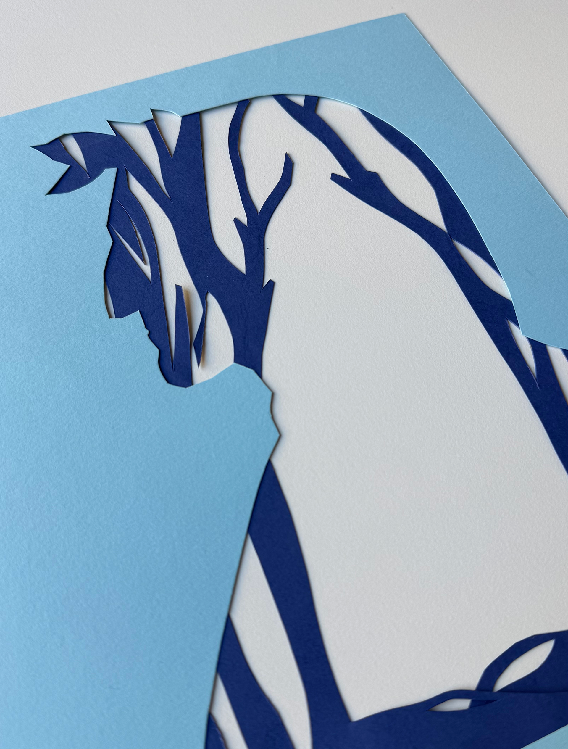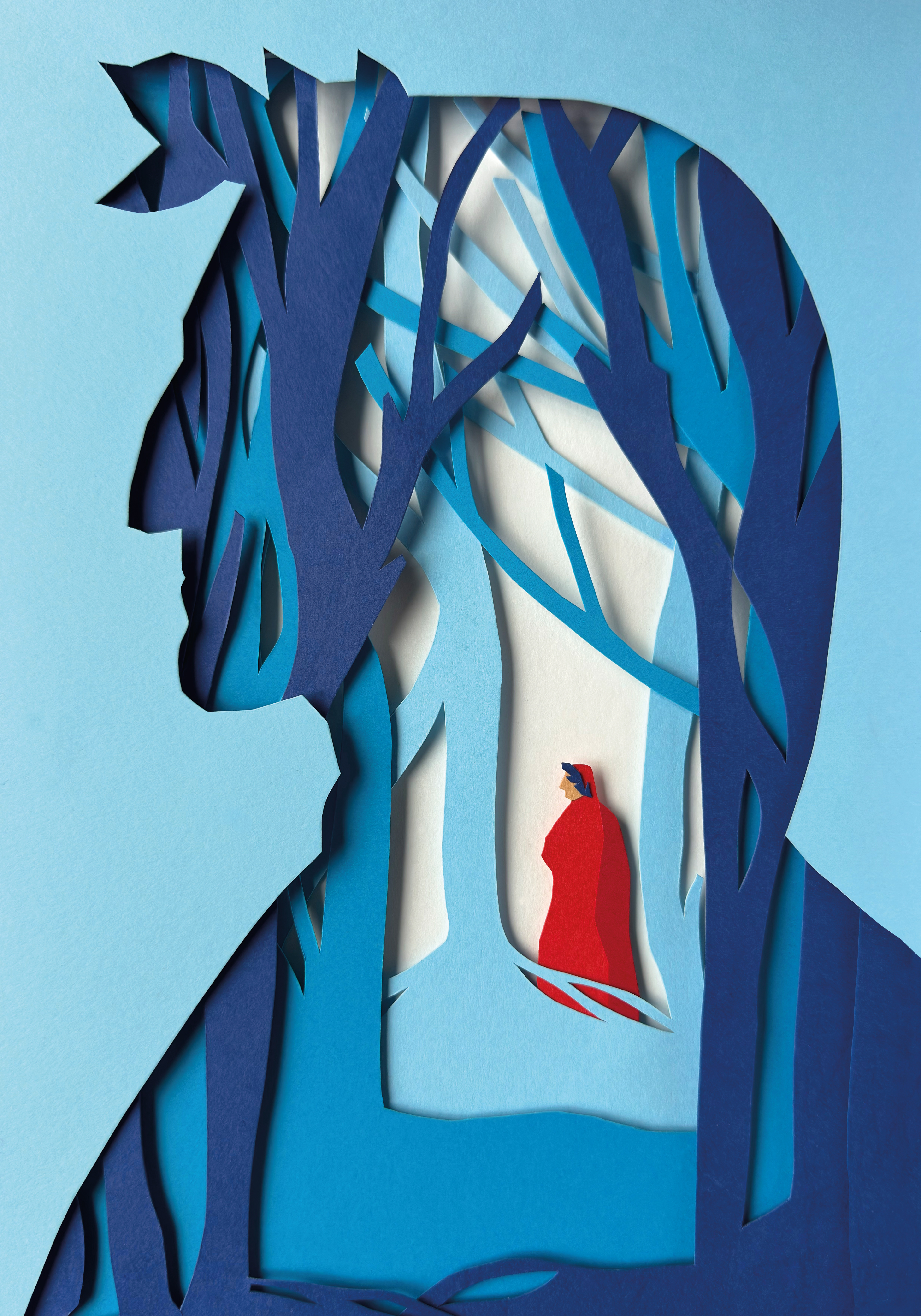 For this occasion I made a paper-cut illustration as a tunnel book, set within Dante’s face, where different layers create depth and a sense of going through the image.