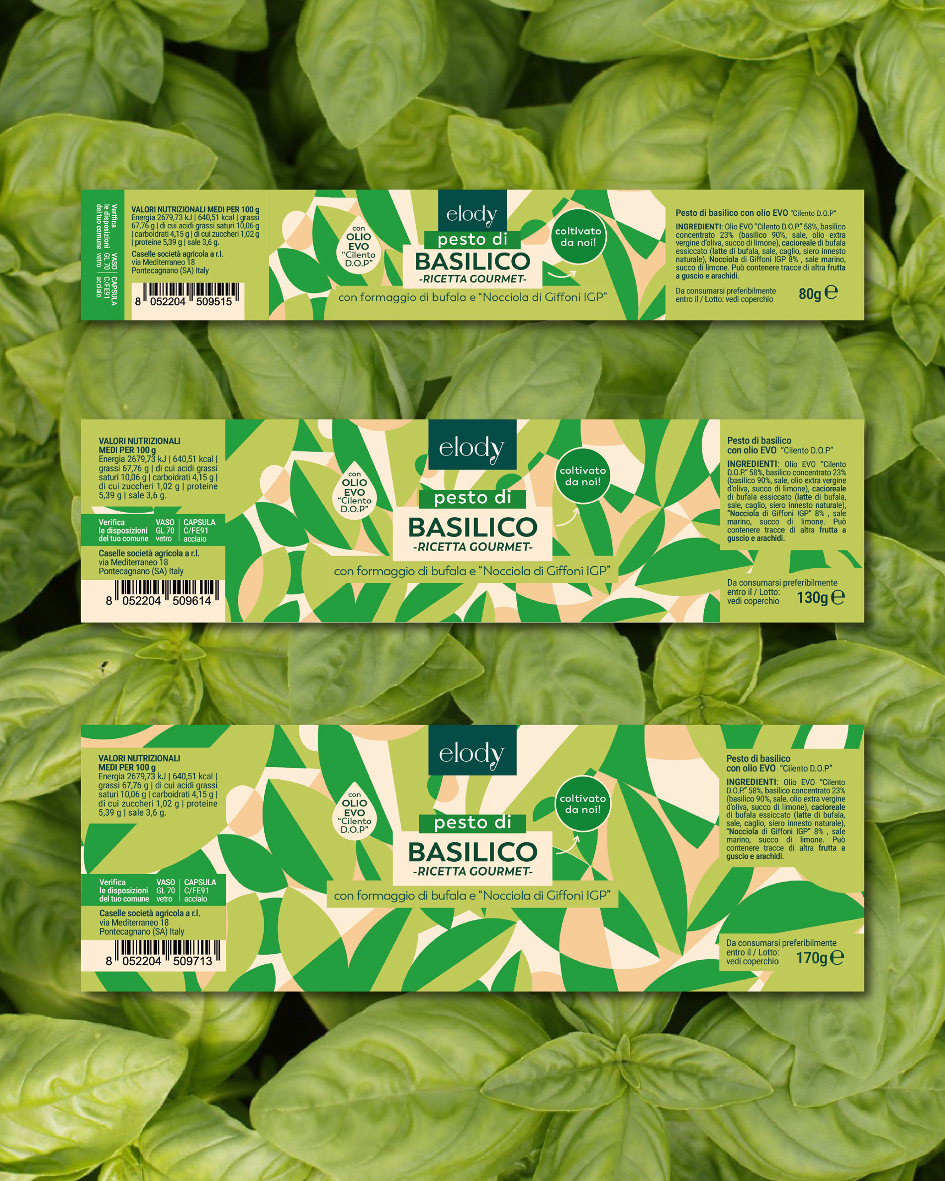 For this project I developed Elody’s new packaging line, blending graphic design with illustration. Each pesto features its own pattern and color palette inspired by the main ingredients with a design that stays playful, abstract and instantly recognizable.